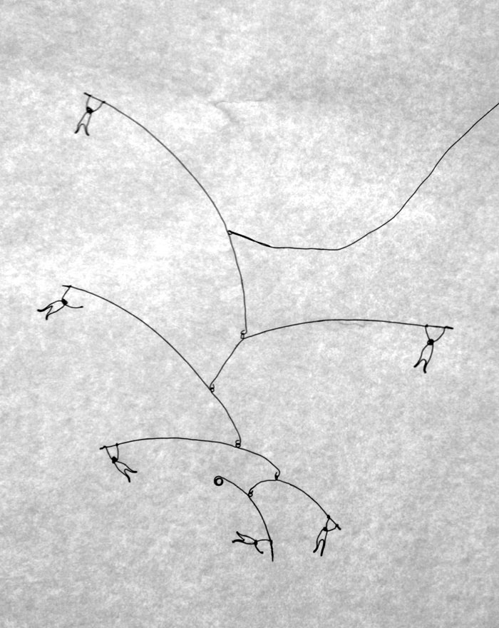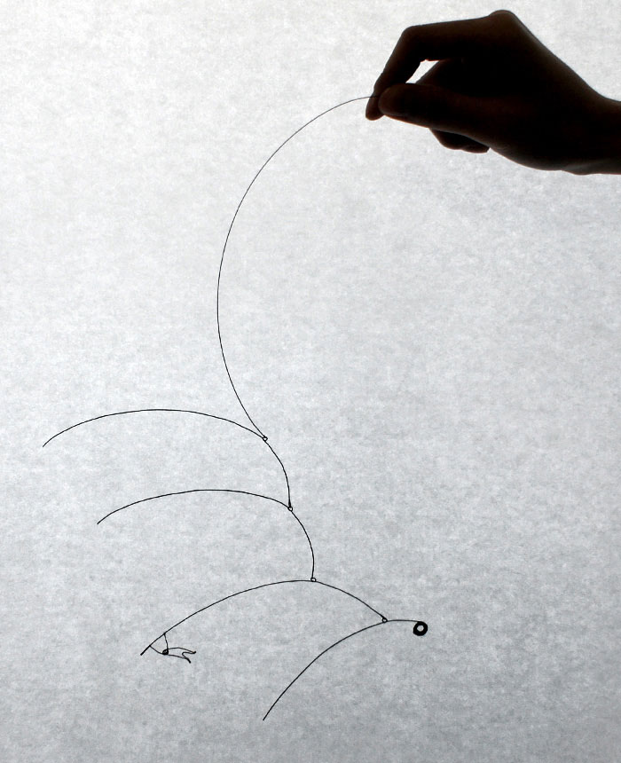 야채 한 단을 묶는 철사를 수집·해체하여 모빌을 만들었다.
