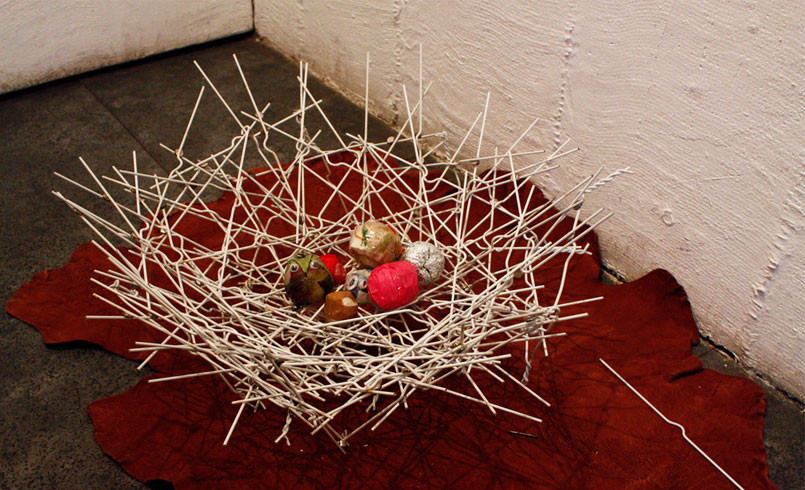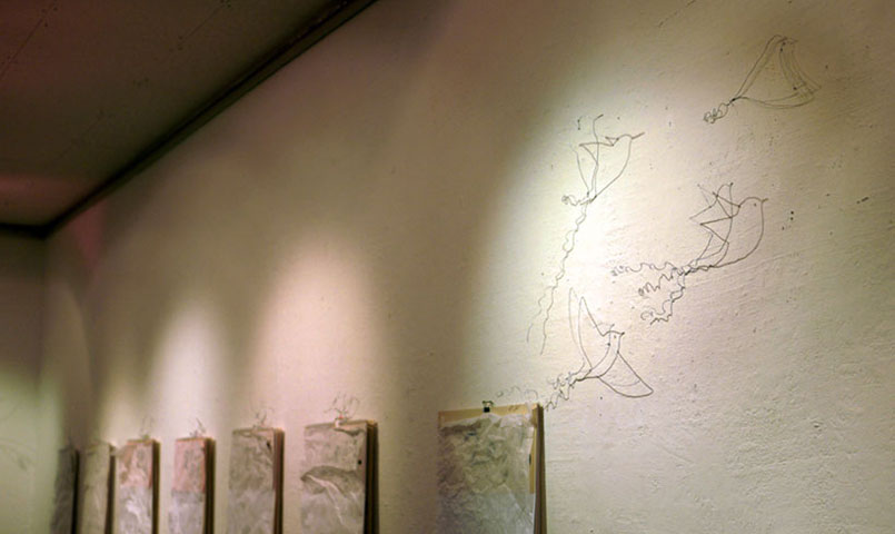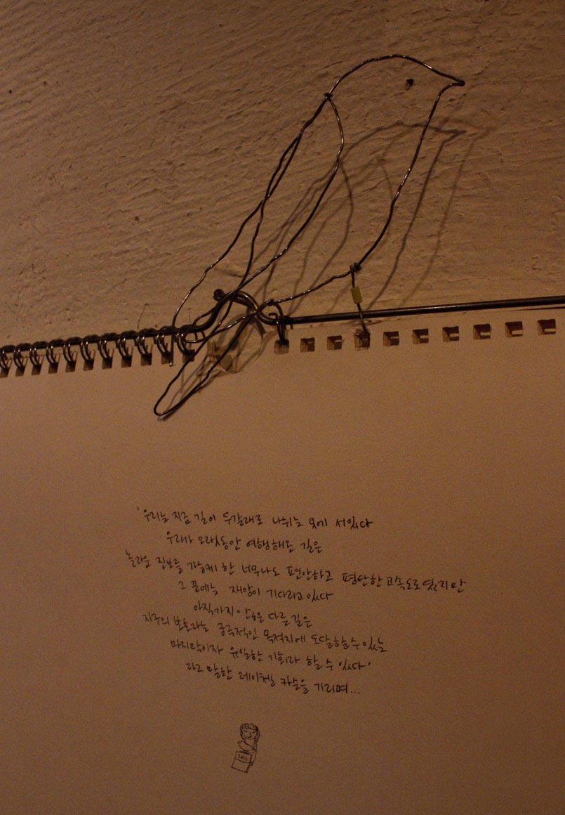 즉시 달력의 철사를 한 부분만 남겨놓고 풀어내 달력 위에 앉아있는 새의 모양으로 만들었고, 그린캔바스에서 주최하는 2012녹색여름전에 출품하였습니다.